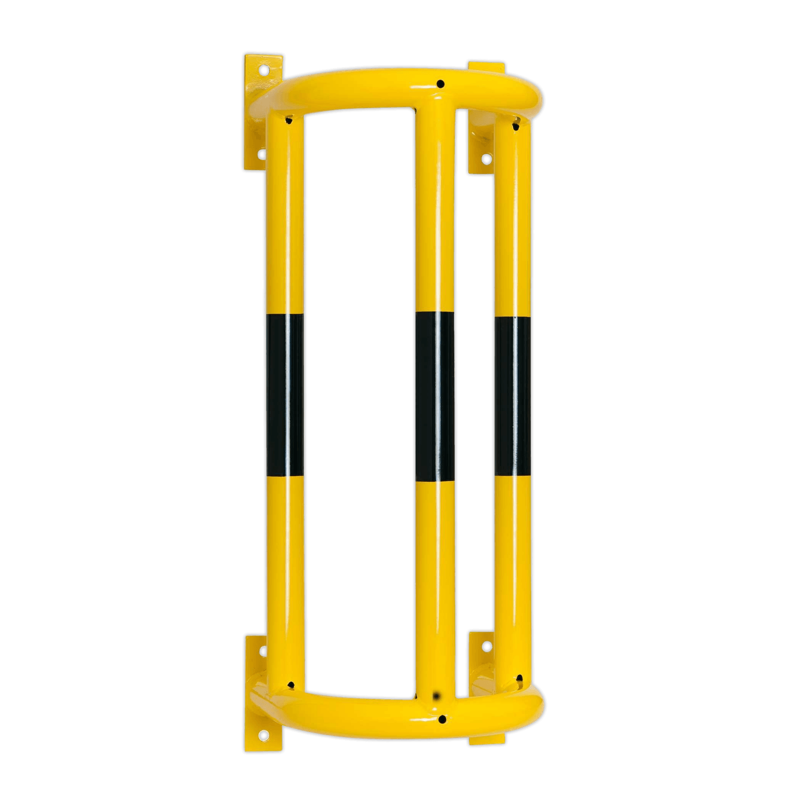 Protecteur de tubes en acier 180° jaune/noir pour montage mural – hauteur 1000/1500 mm
