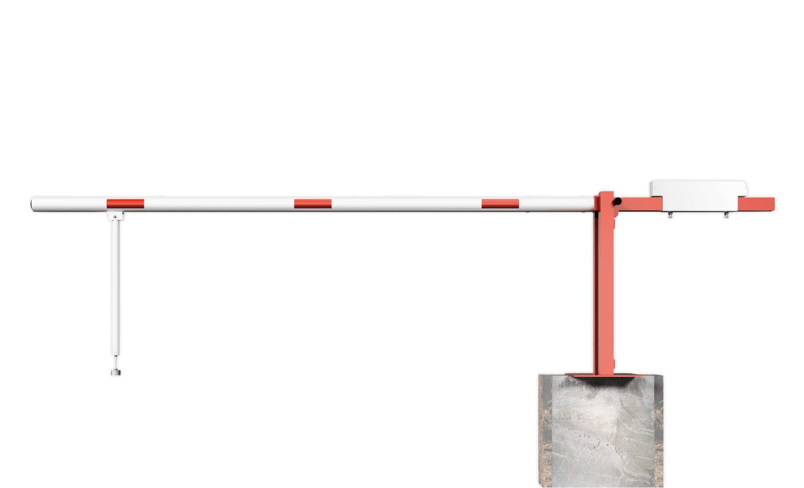 Barrière levante en acier galvanisé et revêtue (RAL3020) avec contrepoids, poteau de support ou pendule